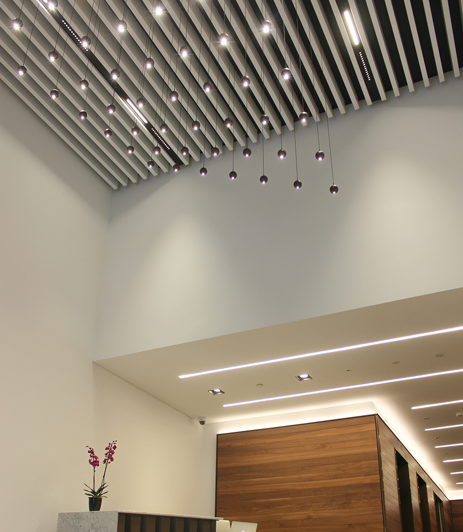 Continuous LED linear lighting was installed to bespoke reception desk and